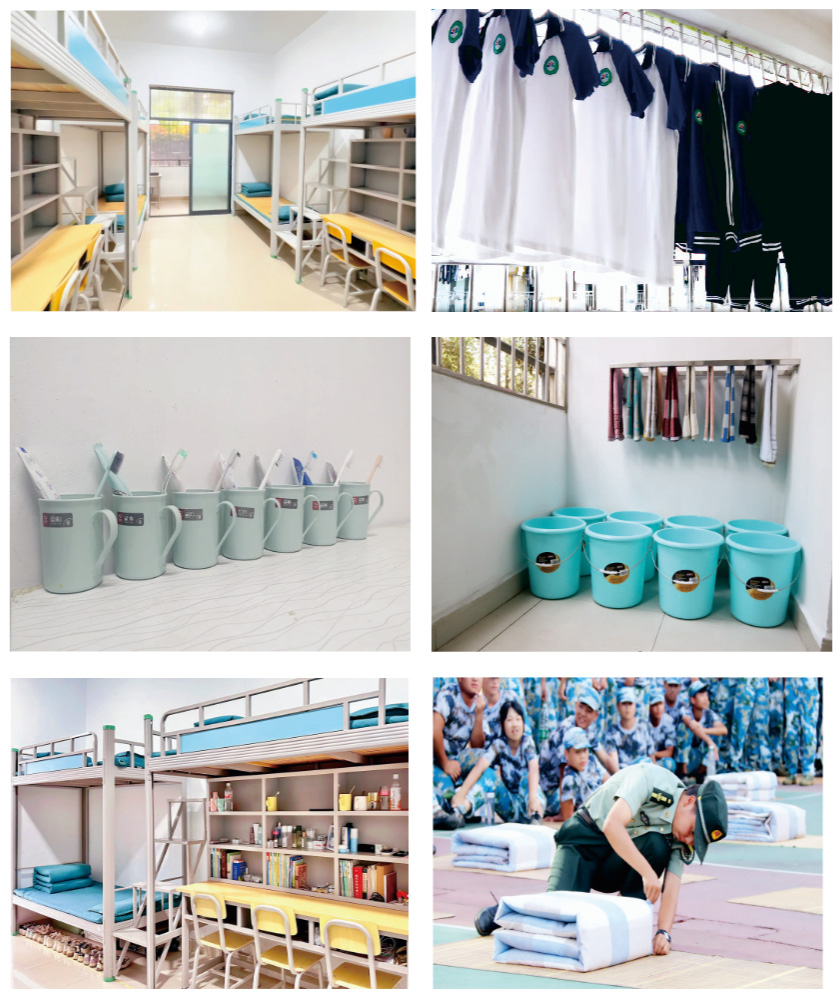 我校十分重视学生自我管理意识及能力的培养,组建以优秀学生代表为主体的 “先锋连”,组织学生参与学校日常管理,培养学生吃苦耐劳、勇于进取的顽强毅力,勤俭节约和团结友爱的优良作风,以及爱国主义、集体主义精神;以宿舍内务管理 “八条线” 及 “三自教育” 为抓手,培养学生自我教育、自我管理、自我提升的能力。通过一系列科学、合理、实用的教育方式,将学生逐步培养成乐观、自信、自立的阳光青年,引导学生树立正确的世界观、人生观、价值观。真正落实 “军魂育人” 的精神,培养具有 “纪律严、技能优、体能强” 的复合型人才。